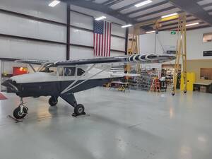 Dark blue on bright white with grey stripe. All new recover. Any component that needed to be made to be like new, was replaced. Sensenich 74DM6-o-63 Prop with 577 SOH. Airtech coatings. Ceconite 102 fabric with Polyurethane paint. Sealed struts with HD fork ends. See list of modifications. Fresh annual as of 8-5-2024. Gross Wt = 2000 lbs. EW = 1182 lbs. Useful load = 818 lbs.